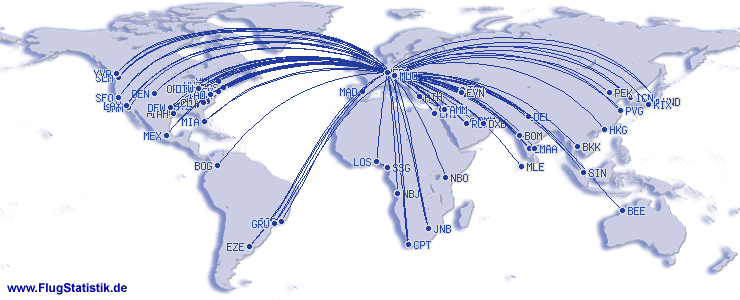 | Najkratší let: | 138 km, 2:15 h, München (Franz Josef Strauß) - Nürnberg (Albrecht Dürer), 08.02.2026 |