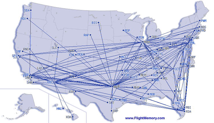 | Vol le plus court: | 167 km, 2:30 h, Philadelphia (International) - Wilkes-Barre (Scranton International), 07.03.2026 |