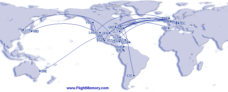 | Vol le plus long (en temps): | 15:30 h, 10,999 km, Dallas/Fort Worth (International) - Seoul (Incheon), 16.03.2026 |