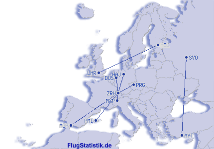| Shortest Flight: | 203 km, 1:15 h, Mailand (Malpensa) - Zürich (Kloten), 25.10.2025 |