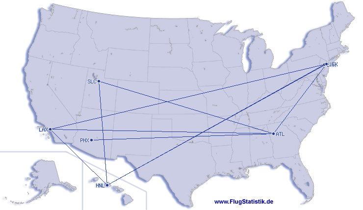 Najduzi let (trajanje-vremenski):11:23 h, 8.015 km, New York (John F. Kennedy) - Honolulu (Daniel K. Inouye Int.), 11.04.2026