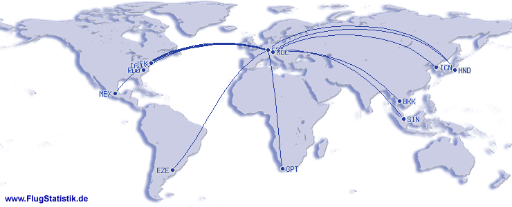 | Longest Flight (Duration): | 14:25 h, 9.370 km, Tokio (Haneda) - München (Franz Josef Strauß), 22.03.2026 |