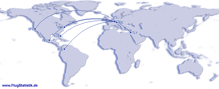 | najdaljši let (časovno): | 11:55 h, 9.448 km, Munich (Franz Josef Strauss) - San Francisco (International), 29.01.2026 |