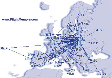 Europaflyvninger![]() Klik på kortet for at forstørre |