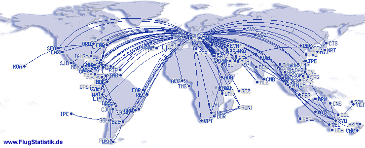 | Najduzi let (daljina): | 11.516 km, 12:27 h, Buenos Aires (Ezeiza - Ministro Pisterini) - Frankfurt (Rhein-Main), 15.02.2014 |