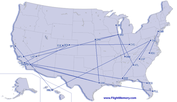 | 所搭乘过最长时间的航线: | 9:07 h, 4,814 mi, Washington (Dulles) - Honolulu (Daniel K. Inouye Int.), 02-15-2026 |