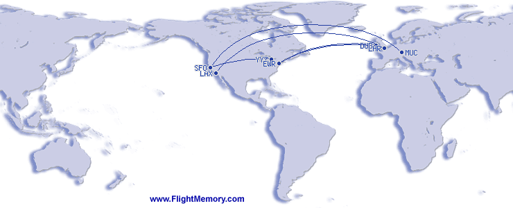 | Vuelo más largo (Distancia): | 5,871 mi, 12:00 h, München (Franz Josef Strauß) - San Francisco (International), 02-10-2026 |