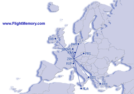 | Vol le plus court: | 126 mi, 0:55 h, Zürich (Kloten) - Mailand (Malpensa), 04-03-2026 |