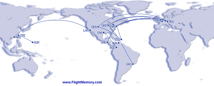 | Vol le plus long (en distance): | 7,256 mi, 17:05 h, Los Angeles (International) - Hong Kong (International), 03-17-2026 |
