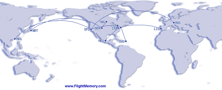 | Vol le plus long (en temps): | 15:00 h, 6,922 mi, San Francisco (International) - Hong Kong (International), 04-09-2026 |