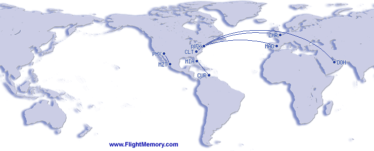 | cel mai lung zbor (Distanță): | 6,792 mi, 14:30 h, Doha (Hamad International) - Philadelphia (International), 03-20-2026 |