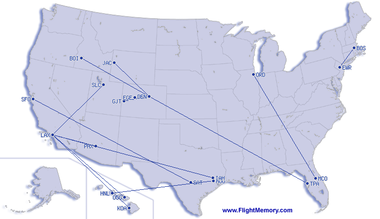 | เที่ยวบินที่ยาวที่สุด: | 3,908 mi, 7:29 h, Honolulu (Daniel K. Inouye Int.) - Houston (William P. Hobby), 04-19-2026 |