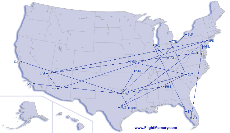 | Найкоротший політ: | 225 mi, 1:12 h, Dallas/Fort Worth (International) - Houston (George Bush Intercontinental), 04-01-2026 |