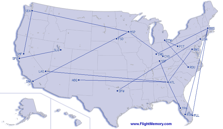 | Shortest Flight: | 197 mi, 1:08 h, Minneapolis (Saint Paul International) - Sioux Falls (Regional, Jo Foss Field), 12-02-2025 |
