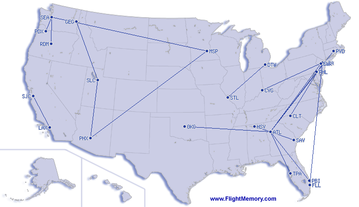 | Shortest Flight: | 130 mi, 0:44 h, Portland (International) - Seattle (Seattle-Tacoma International), 12-18-2025 |