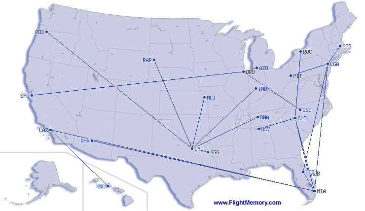 | Shortest Flight: | 122 mi, 0:59 h, Chicago (O'Hare) - Kalamazoo (Battle Creek International), 02-13-2026 |