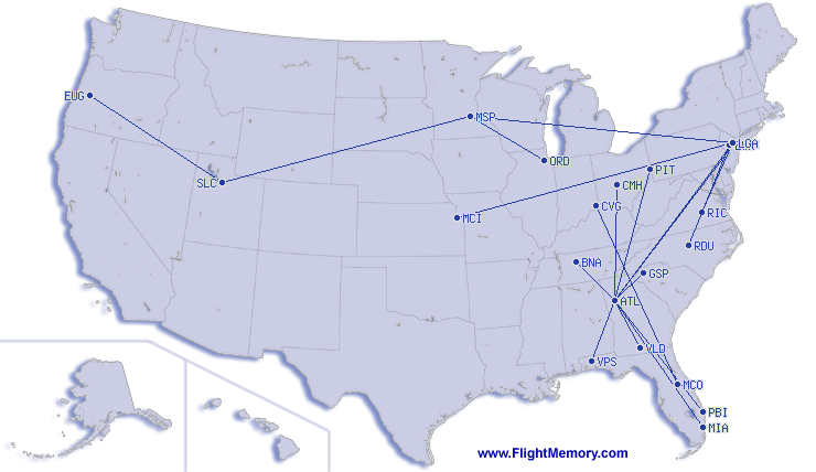 | Shortest Flight: | 153 mi, 0:53 h, Atlanta (Hartsfield - Jackson Int.) - Greer (Greenville Spartanburg Int.), 03-10-2026 |