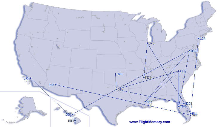 | Gennemsnitlige flyvning: | 1,748 mi, 3:57 h |