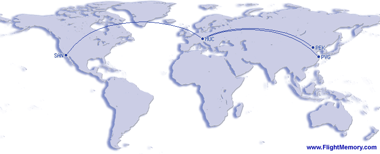 最長航程(時間):13:10 h, 5,460 mi, Shanghai (Pudong) - München (Franz Josef Strauß), 04-08-2026